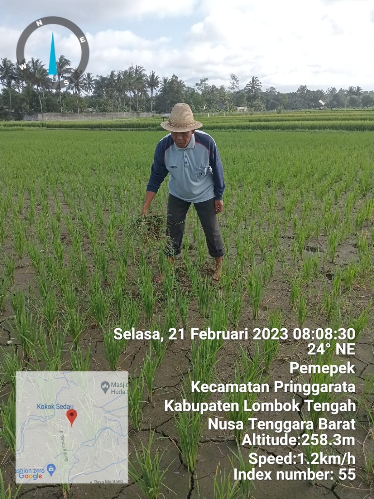 Kegiatan perbanyakan benih padi varietas Inpari 39 kelas benih BD-BP seluas 1.0 Ha, pada hari ini selasa 21 Februari 2023 di lahan UPB Sedau sedang melaksanakan kegiatan penyiangan pertama (I) yang berlokasi di Sedau Desa Pemepek Kecamatan Pringgarata Lombok Tengah yang dilaksanakan oleh tim UPB Sedau penyiangan dilakukan dengan cara mencabut gulma atau tanaman lain yang ada di sekitar pertanaman padi guna menghindari persaingan makanan dengan tanaman pokok, dan kondisi lahan setelah penyiangan kelihatan bersih dan pertanaman padi terhindar dari gangguan gulma sehingga pertumbuhan dan perkembangan normal.