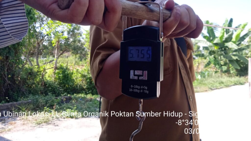 Pada kegiatan ini, varietas padi yang dipanen adalah Inpari 32. Hasil ubinan menunjukkan jumlah 5,75 kilogram, yang jika dikonversikan menghasilkan produktivitas sekitar 9,2 ton per hektar. Ini menandakan peningkatan signifikan dibandingkan dengan hasil sebelum mengikuti program Genta Organik, yang hanya mencapai 6 ton per hektar.