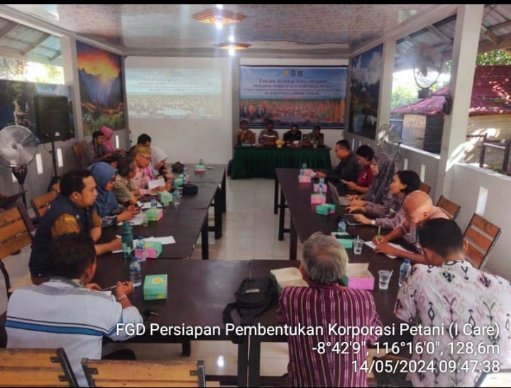 Kementerian Pertanian melalui BSIP sedang giat membangun kawasan pertanian berkelanjutan dengan Program ICARE di 9 provinsi Indonesia. Dalam rangka persiapan pembentukan korporasi petani Program ICARE, penyuluh Bapeltanbun mengikuti kegiatan Focus Group Discussion (FGD) di Praya, Kabupaten Lombok Tengah yang dihadiri oleh Kepala BSIP Provinsi NTB, Kepala Dinas Pertanian Kabupaten Lombok Tengah, Kepala Dinas Koperasi dan UMKM Kabupaten Lombok Tengah, Kepala Bidang lingkup Distan Loteng, Kepala UPT, dan Koordinator Penyuluh Pertanian Lokasi ICARE.