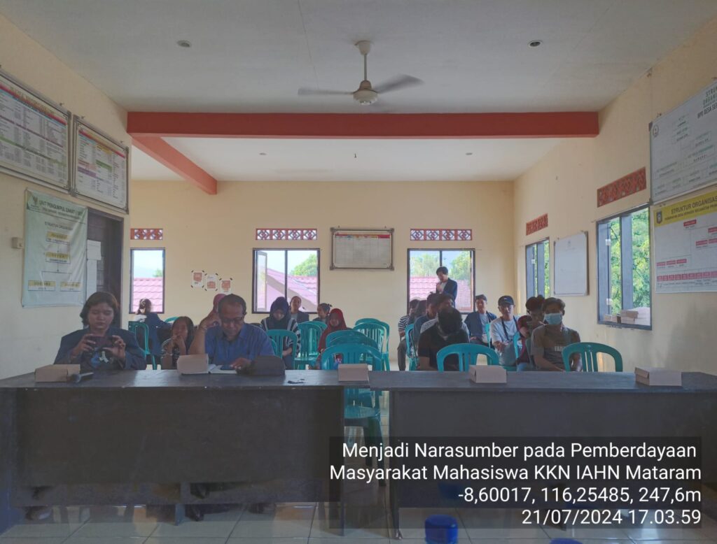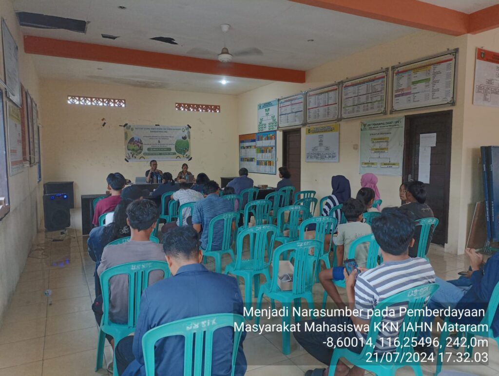 Pada hari Minggu, 21 Juli 2024, melalui program Kuliah Kerja Nyata (KKN) mahasiswa Institut Agama Hindu Negeri (IAHN), Penyuluh Pertanian Balai Pertanian dan Perkebunan Provinsi NTB, Ibrahim, SP, berperan sebagai narasumber dalam kegiatan pembinaan dan pemberdayaan masyarakat di Dusun Taman Bali, Desa Sepakek, Kecamatan Pringgarata, Lombok Tengah. Acara ini mengangkat tema “Optimalisasi Ekonomi dan Kelestarian melalui Pengelolaan Sisa Pemupukan” serta “Pengenalan Sistem Mina Padi terhadap Peningkatan Pendapatan Petani.” Peserta kegiatan ini terdiri dari pemuda tani, wanita tani, dan mahasiswa KKN IAHN Mataram.