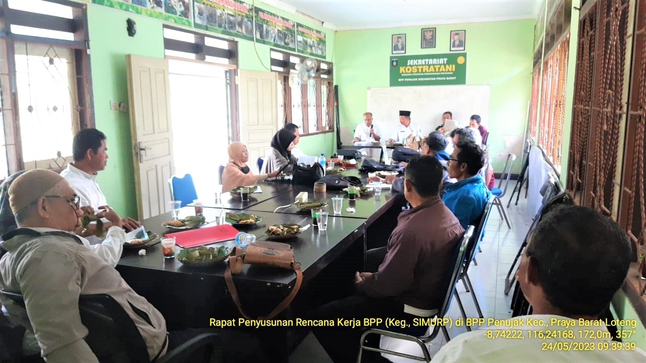 Balai Pelatihan Pertanian dan Perkebunan NTB selaku PPIU dan Penyuluh Bapeltanbun dalam mendampingi penerima manfaat program SIMURP di Lombok Tengah di 144 Poktan dalam menerapkan teknologi CSA. Dalam pelaksanan program SIMURP Tahun 2023 dilakukan penyusunan rencana kerja BPP dalam rangka penguatan bertempat BPP Penujak Kecamatan Praya Barat. Hadir pada pertemuan ini yaitu Penyuluh, Kepala UPT, Koordinator Penyuluh,Penyuluh,POPT dan staf BPP lingkup Kecamatan Praya barat. Dalam pertemuan ini membahas rencana kerja BPP meliputi; 1. Pembahasan jadwal bimtek CSA Kelompoktani inti yang akan dilaksanakan mulai tanggal 6 juni s/d 3 agustus 2023 2. Penyusunan materi Bimtek CSA dengan agenda 4 kali dengan materi Seleksi Benih, PUTS, AWD, Pesnab, dan PGPR. Selain itu, pada pertemuan kali ini membahas materi penyuluhan PGPR yang akan dicetak dalam bentuk leaflet untuk mempermudah pembelajaran bagi Poktan.