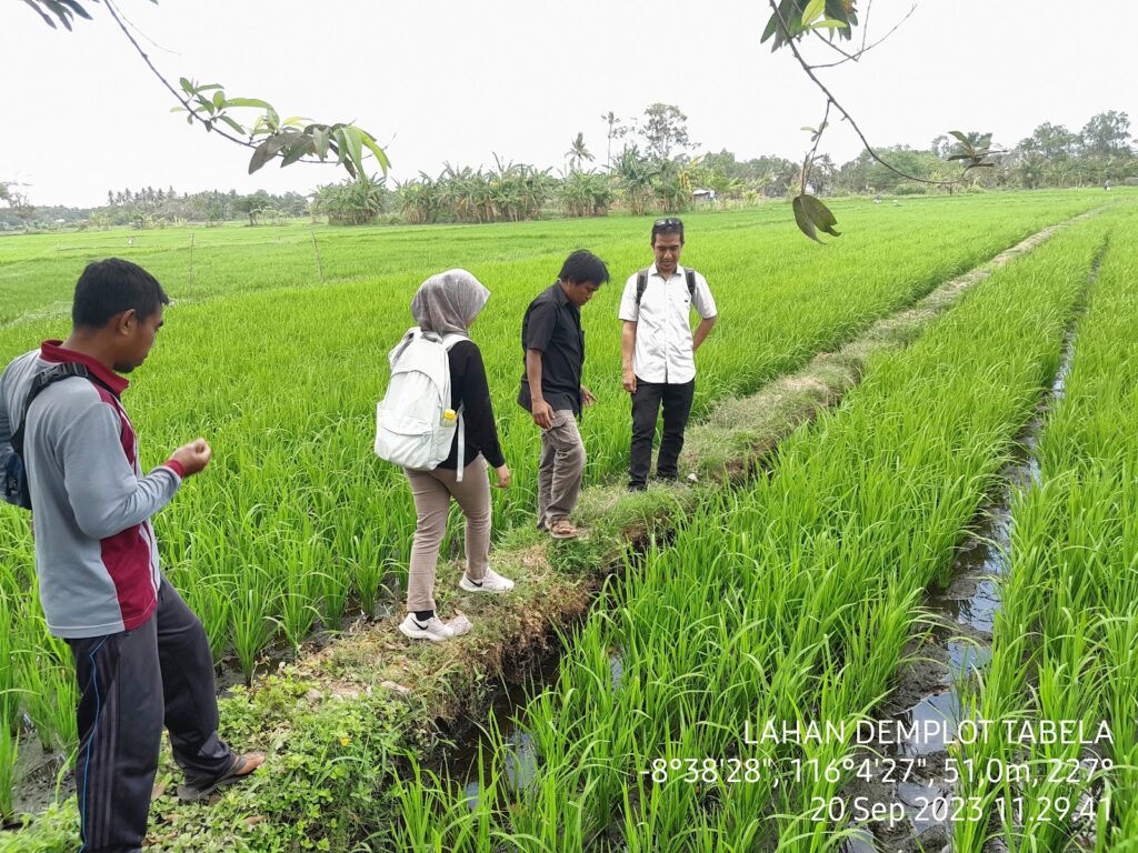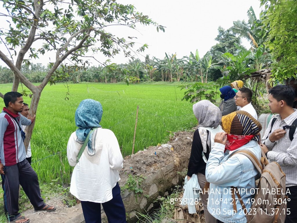 3. Kunjungan lapangan ke lahan petani yang sedang Demplot Padi Sistem Tabela My Farm di Desa Kuranji.