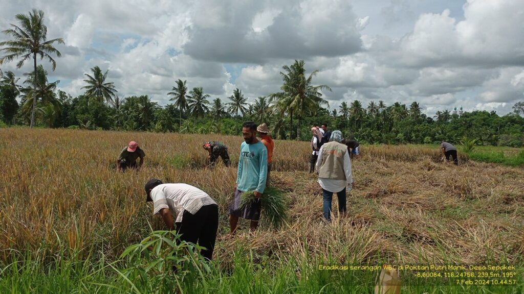 Serangan Organisme Pengganggu Tumbuhan (OPT) Wereng Batang Coklat (WBC) di Kecamatan Pringgarata telah menjadi perhatian serius bagi petani setempat. Pada sekitar tanggal 10-11 Januari 2024, ditemukan populasi WBC bersayap pendek sebanyak ± 6-7 ekor per rumpun di Poktan Putri Manik, Desa Sepakek, Kecamatan Pringgarata, yang meluas hingga 1 hektar. Petani, didampingi oleh Pengendali Organisme Pengganggu Tumbuhan (POPT) dan Penyuluh Pertanian dari Dinas Pertanian Kabupaten Lombok Tengah , segera bertindak dengan melakukan pengendalian swadaya menggunakan insektisida berbahan aktif Pimetrozin 50%, dengan interval penyemprotan 2-3 hari sekali.