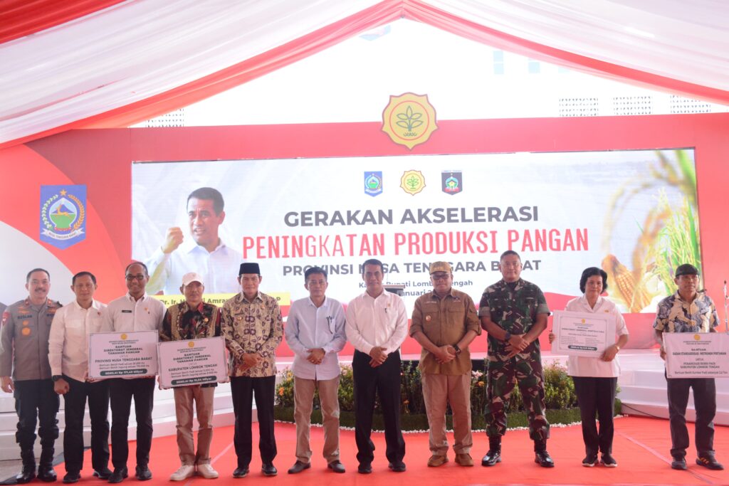 Pada kesempatan ini PJ Gubernur NTB dalam sambutannya mengharapkan adanya bantuan Pemerintah seperti Traktor, Pembangunan/Rehabilitasi Embung, Jalan Usaha Tani, Pembangunan/Rehabilitasi Jaringan Irigasi Tersier, Pompa Air, Combine Harvester, selain itu juga mengharapkan adanya tambahan alokasi kekurangan pupuk subsidi untuk petani sesuai Rencana Definitive Kebutuhan Kelompok (RDKK) yang telah dibuat dengan harapan NTB akan tetap selalu sebagai daerah Swasembada Pangan.