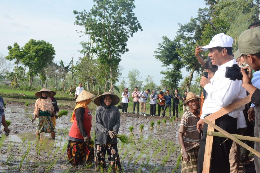 PJ Gubernur NTB, Drs. H. Lalu Gita Ariadi, M.Si. mendampingi Menteri Pertanian Republik Indonesia dalam kegiatan kunjungan kerja  ke Nusa Tenggara Barat dalam rangka GERAKAN AKSELARASI PENINGKATAN PRODUKSI PANGAN JAGUNG DAN PADI. Dalam kunjungannya Dr. Ir. H. Andi Amran Sulaiman, M.P. melaksanakan penanaman padi di lahan Kelompok Tani Pade Maju Dusun Mengelok Desa Batujai Kec. Praya Barat, Lombok Tengah, bersama Bupati Lombok Tengah H. Lalu Pathul Bahri, S.I.P.