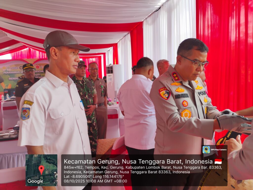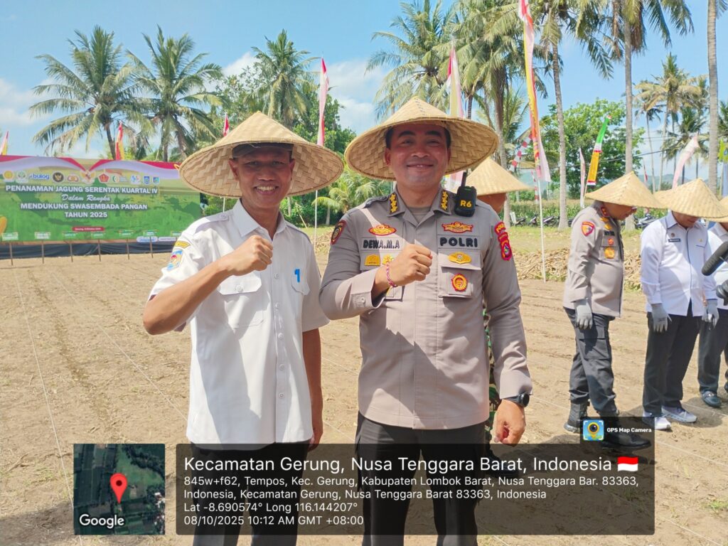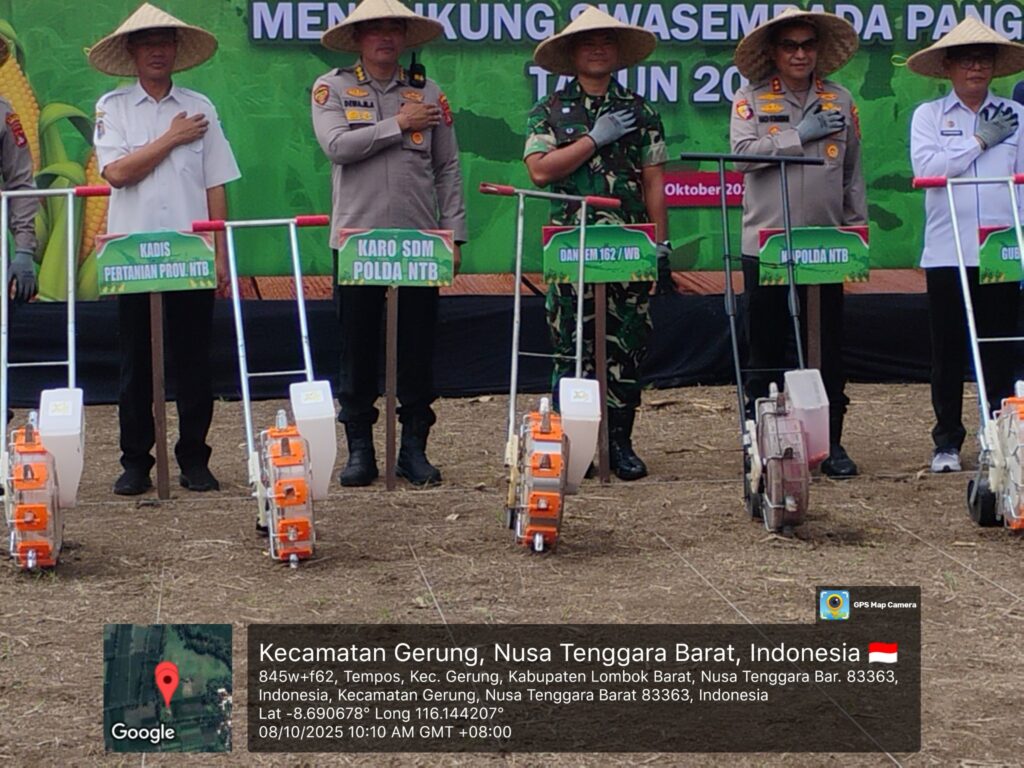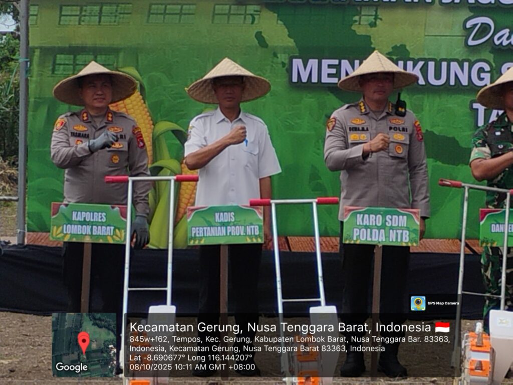 Plt. Kepala Dinas Pertanian dan Perkebunan Provinsi Nusa Tenggara Barat, Muhamad Riadi, S.P., M.Ec.Dev, menghadiri kegiatan Tanam Raya Jagung Serentak Kuartal IV yang diselenggarakan oleh Kepolisian Daerah Nusa Tenggara Barat (Polda NTB) di Dusun Luwuk Daye, Desa Tempos, Kecamatan Gerung, Kabupaten Lombok Barat, pada Rabu, 8 Oktober 2025.