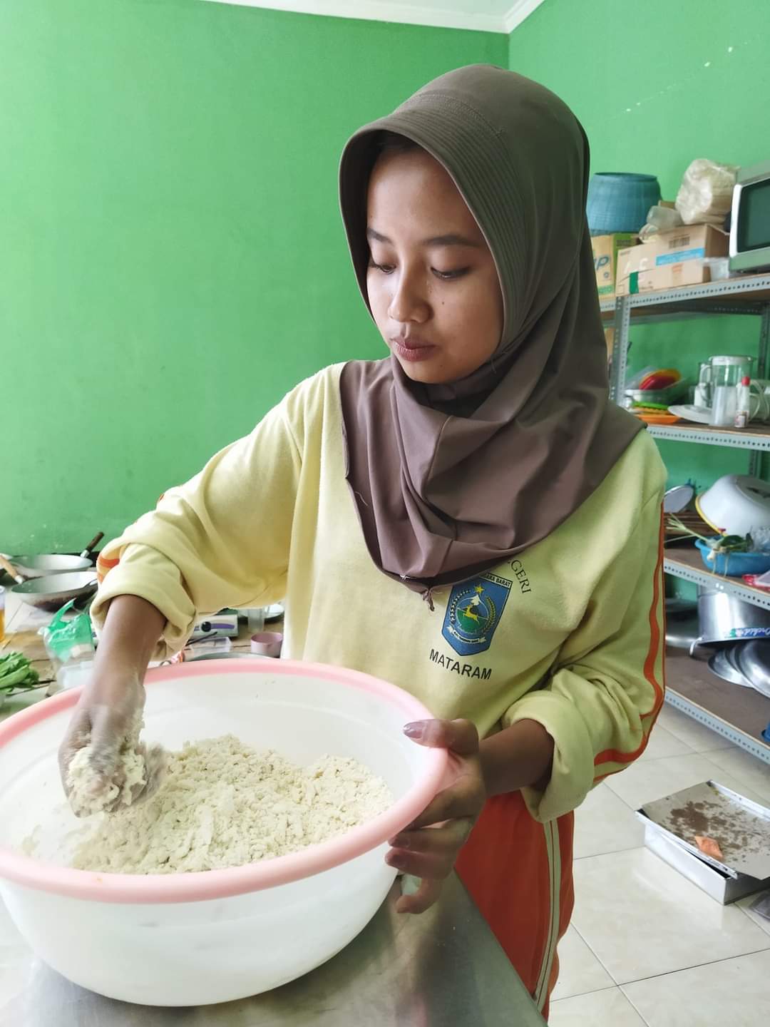 PRAKTEK PEMBUATAN MIE SAYUR BAYAM BRAZIL OLEH SISWI KELAS XII APHP SMKPP NEGERI MATARAM