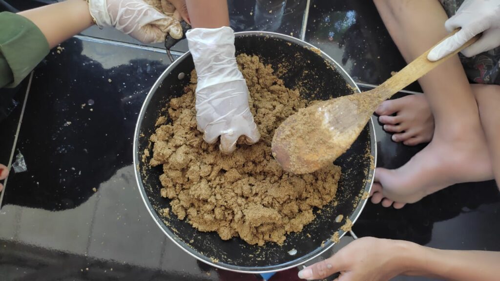 Selama praktik, siswa dibagi menjadi beberapa kelompok kerja, dengan masing-masing kelompok bertanggung jawab atas tahapan tertentu. Mereka melakukan pencampuran bahan-bahan seperti urea, molases, mineral, dan bahan tambahan lainnya hingga membentuk campuran yang homogen. Setelah itu, campuran dicetak menjadi blok-blok kecil dan dibiarkan mengering. Teknik ini memastikan bahwa produk akhir siap digunakan sebagai pakan tambahan untuk ternak di sekolah.