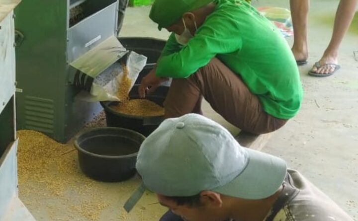 Dimana lokasi kegiatan di UPB santong Desa Santong Kec. Kayangan Kab. Lombok Utara yang dilaksanakan oleh Karyawan UPB, tujuannya untuk membersihkan kotoran calon benih dari biji hampa dan kotoran benih lainnya agar kualitas dan mutu calon benih terjamin.