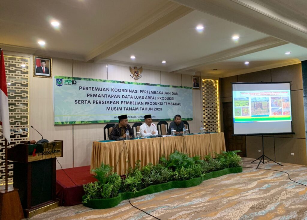 Dinas Pertanian dan Perkebunan Provinsi NTB hari ini mengadakan kegiatan Pertemuan Koordinasi Pertembakauan Dan Pemantapan Data Luas Areal Produksi Serta Persiapan Pembelian Produksi Tembakau musim tanam tahun 2023 di Hotel Lombok Raya Mataram. (Jum’at, 7/7)