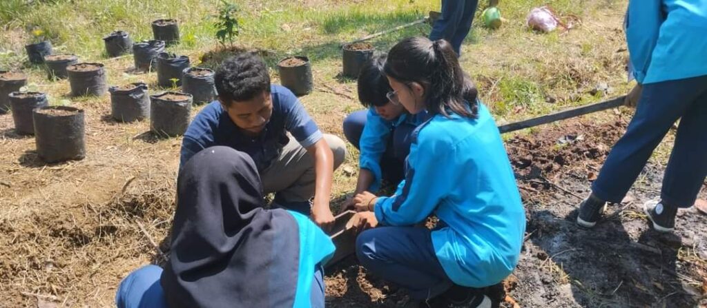 Senin, 16 Oktober 2023. Siswa/i Kelas XI APT SMKPP Negeri Mataram melakukan Praktek Sanitasi Lahan dan Pembuatan Bedengan untuk bibit tanaman di Lahan Praktek Sekolah.