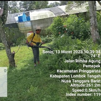 Kegiatan pelaksanaan hortikultura yang ada di kabupaten Lombok Tengah Kec. Pringgarata yaitu Unit Perbanyakan Benih ( UPB) buah-buahan di Sedau hari ini Senin 13 Maret 2023 melakukan kegiatan Sanitasi lahan perkebunan untuk mengendalikan gulma atau tanaman lain menggunakan herbisida kontak pada tanaman pohon indukan mangga dan tanaman manggis yang berlokasi di Sedau Desa Pemepek Pringgarata Lombok Tengah.