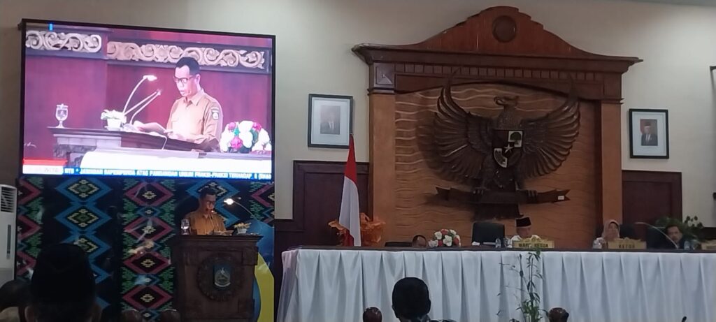 Pj. Gubernur NTB di wakili oleh Asisten III Setda Provinsi NTB atas pandangan umum fraksi-fraksi terhadap satu (1) buah Raperda Prakarsa Gubernur NTB.