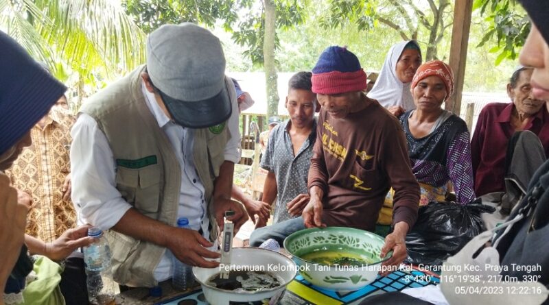 Mengaplikasikan langsung kelahan petani, yang mana Elisitor Biosaka ini adalah bukan pupuk, ataupun bukan pestisida, tetapi elisitor yang berperan sebagai signaling bagi tanaman, hemat pupuk kimia sintetis, bisa meminimalisir hama penyakit dan lahan menjadi lebih subur, begitu juga dengan Trichokompos yang bermanfaat untuk memperbaiki kesuburan tanah dan Sebagai pengendali OPT penyakit tular tanah. Sosialisasi ini dilaksanakan di kelompok tani Tunas Harapan Kel. Gerantung Kec. Praya Tengah yang dihadiri oleh POPT, PPL Wkpp, Kepala Dusun dan anggota kelompok tani.