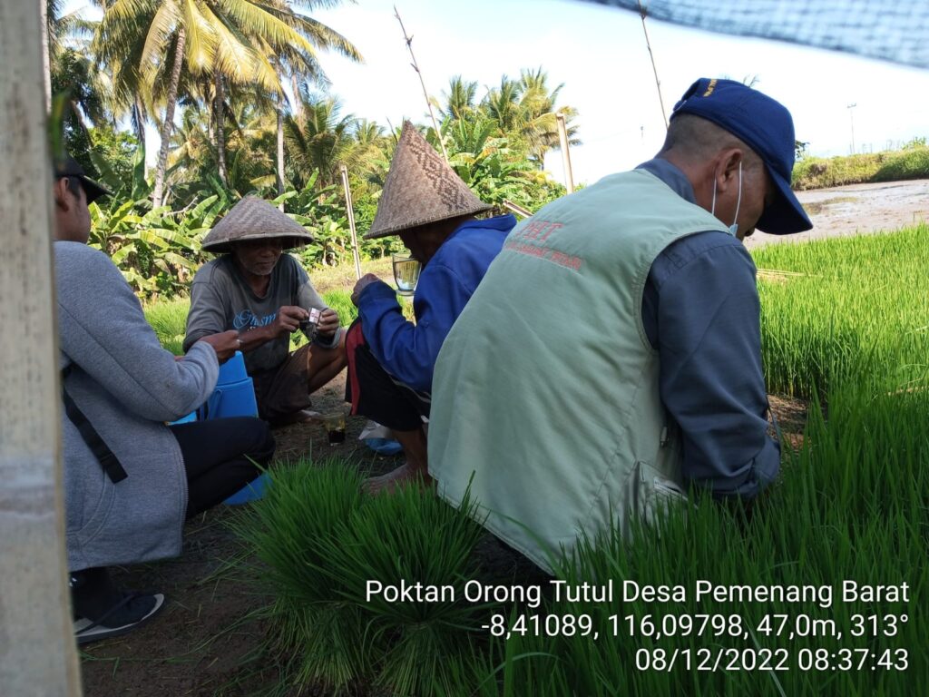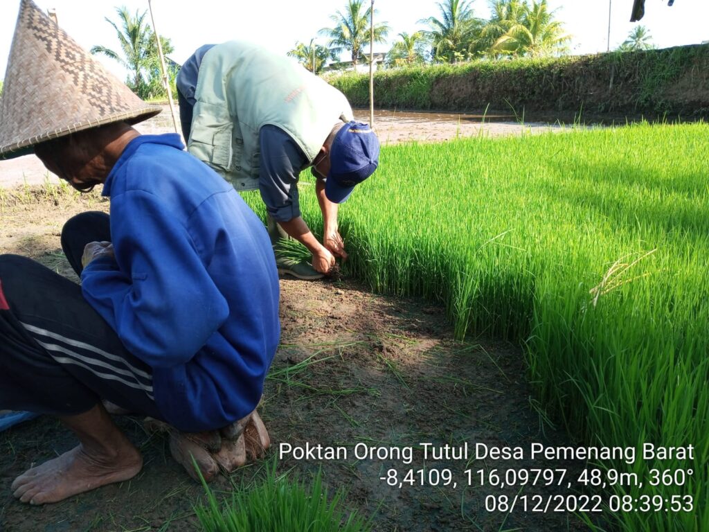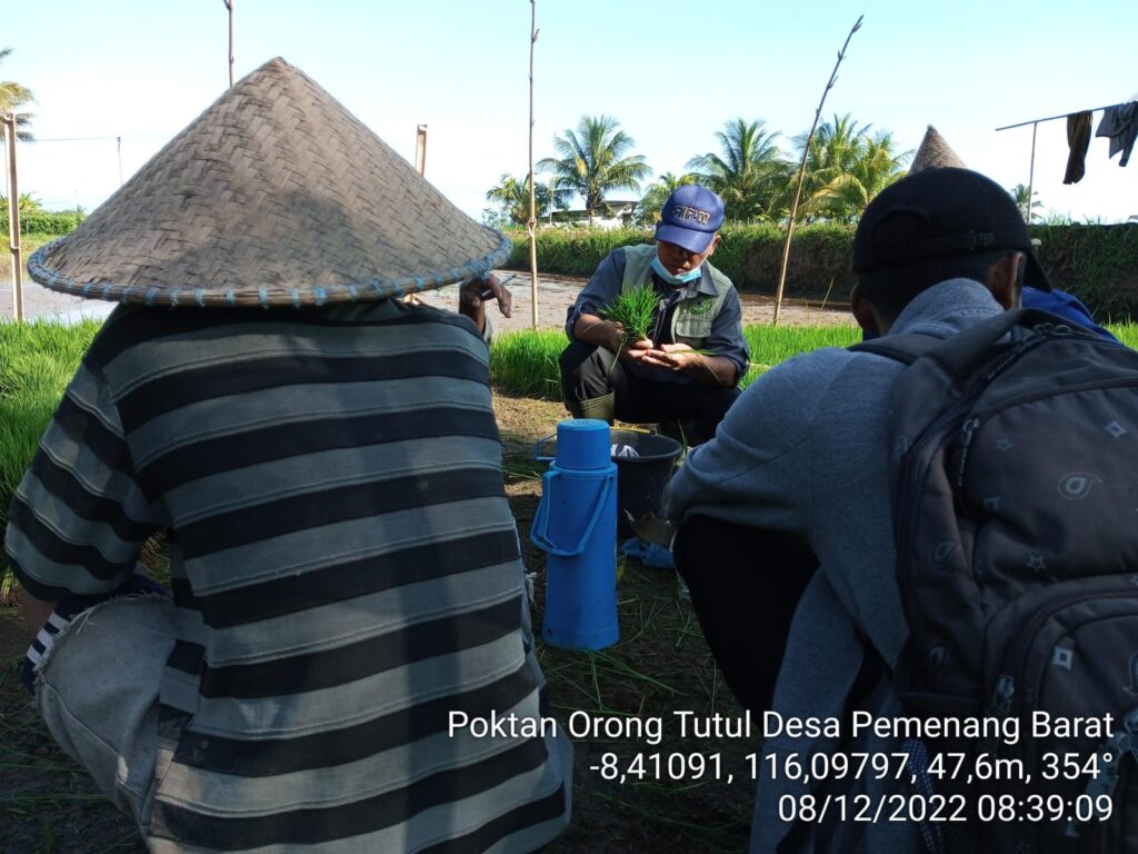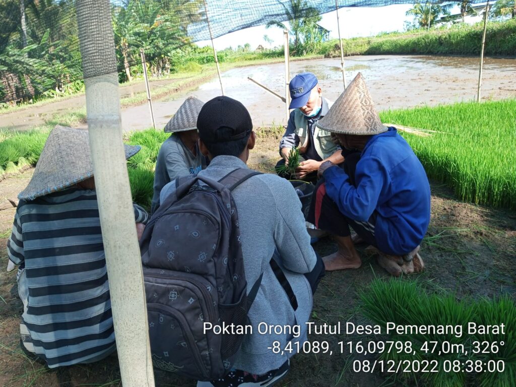 Saya selaku POPT Kecamatan Pemenang (Hirkan) didampingi oleh PPL Pemenang Barat (Ibu Humratul Hasanah) dan petani yang ada di sekitar poktan, kegiatan ini dilaksanakan dengan cara pengamatan secara lansung di lokasi persemaian agar petani bisa melihat dan memahami dampak fisiolohis dari serangan OPT PBP di fase persemaian