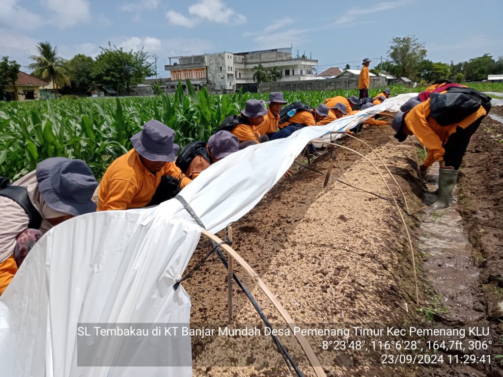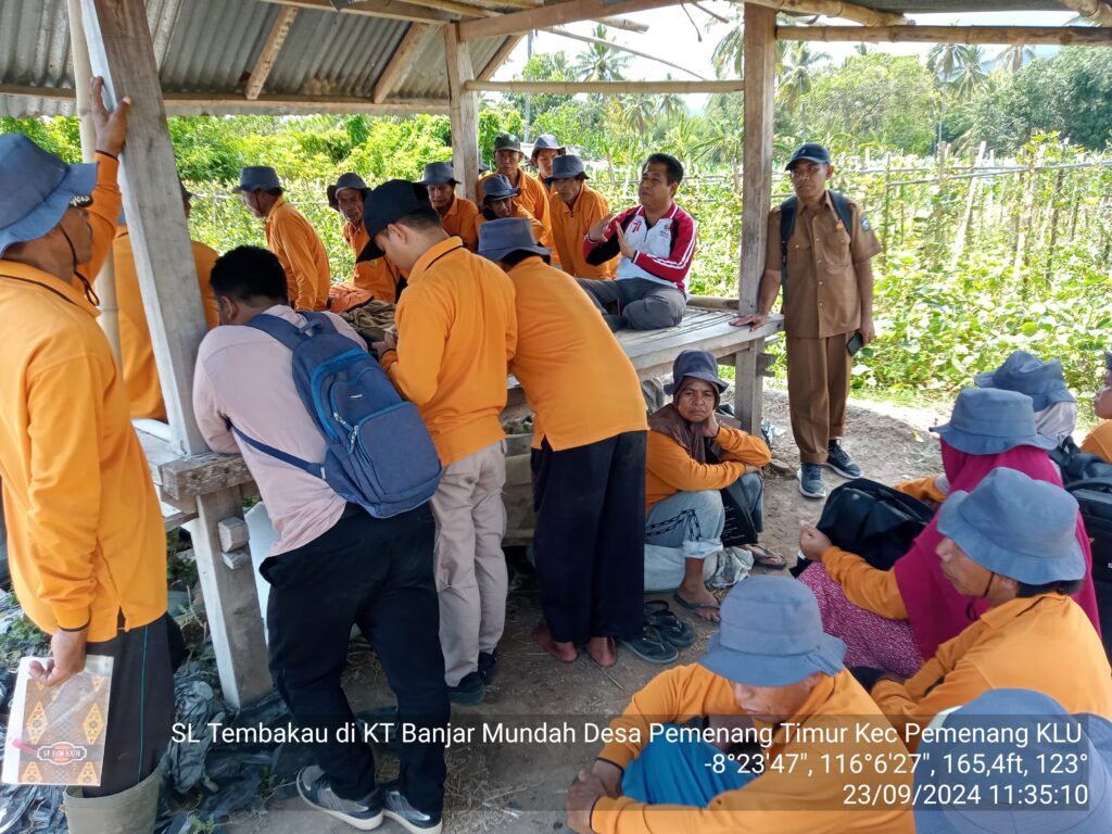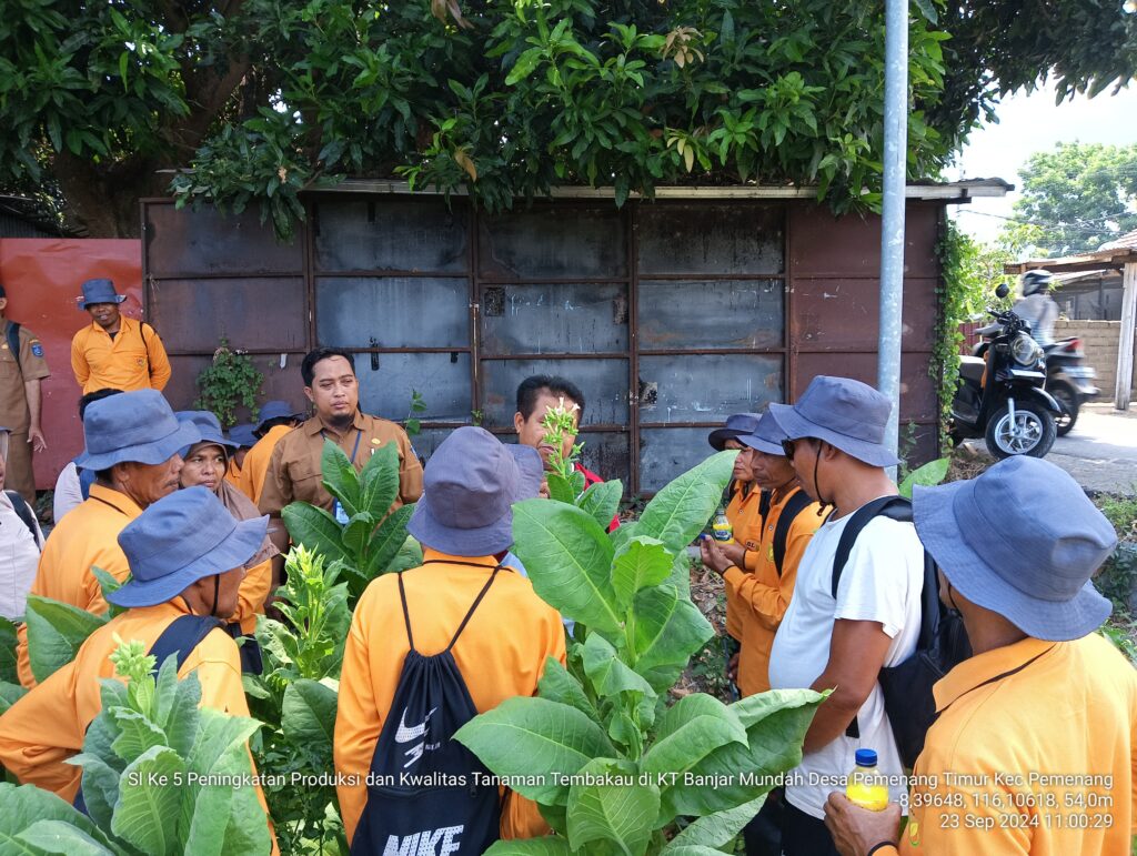 Senin, 23 September 2024 – Kegiatan Sekolah Lapang (SL) Peningkatan Produksi dan Kualitas Tanaman Tembakau yang dilaksanakan di Kelompoktani Banjar Mundah, Desa Pemenang Timur, Kecamatan Pemenang, Kabupaten Lombok Utara, telah memasuki pembelajaran ke-5. Kegiatan ini bertujuan untuk memberikan pemahaman yang lebih mendalam kepada petani mengenai teknik-teknik modern dalam budidaya tanaman tembakau.