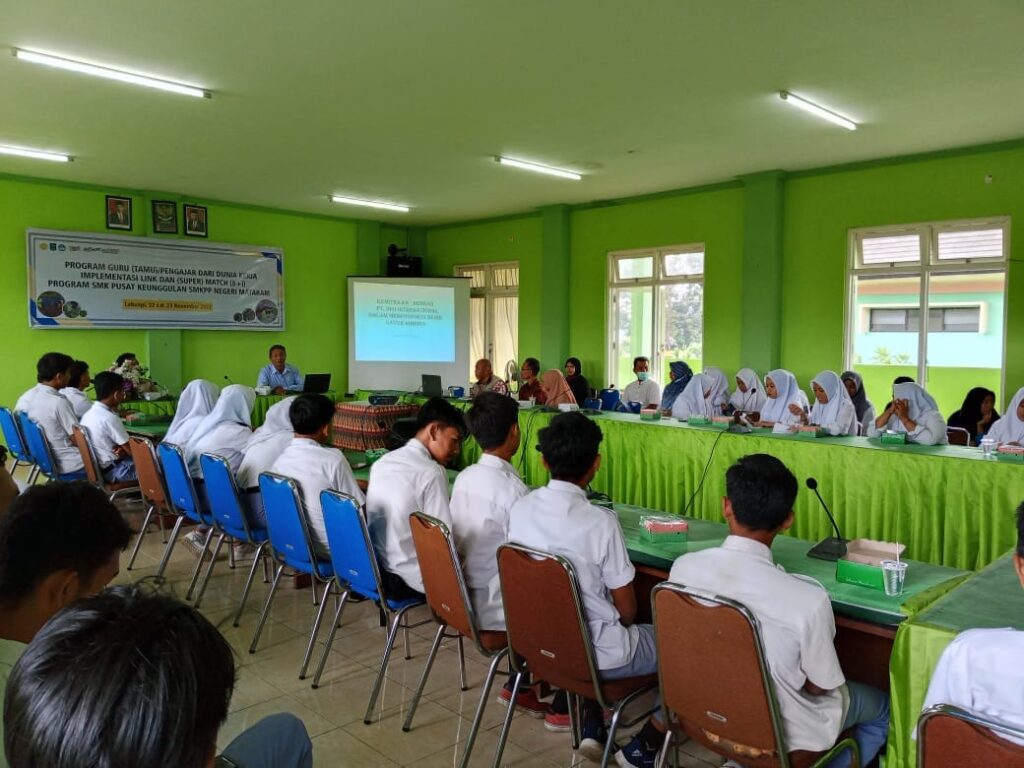 Tema yang diangkat pada workshop kali ini adalah Implementasi link dan ( super ) match (8+i) Program SMKPK – SMKPP Negeri Mataram. Kegiatan workshop dihadiri oleh siswa/I jurusan PPT (Pemuliaan dan Perbenihan Tanaman) kelas XI, Produktif Agritan kelas X dan XI , dan siswa/I Jurusan Perkebunan dan tentunya juga dihadiri oleh guru guru pengampu mata pelajaran produktif khususnya produktif pertanian.